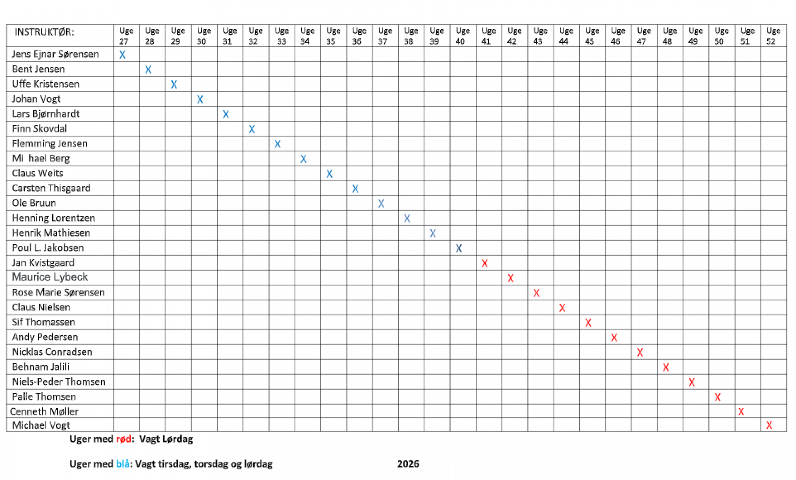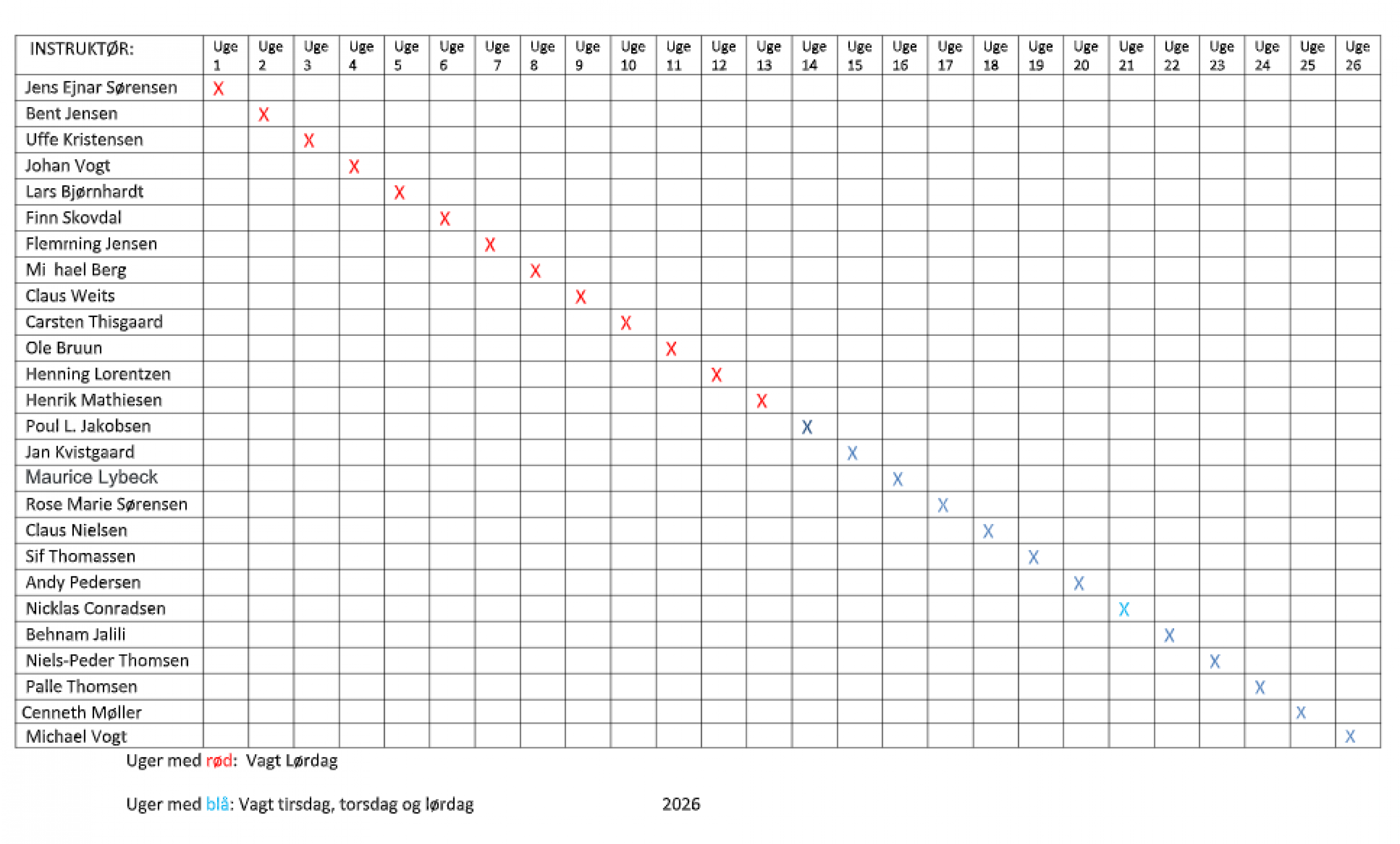 Esbjerg Flugtskydeklub har uddannet følgende instruktører til brug på banerne. Det er muligt, på alle skydedage, at få instruktion, samt hjælp fra disse ved blot at henvende sig i klubhuset.